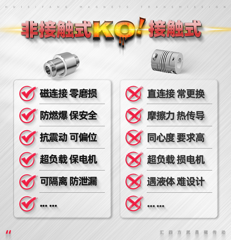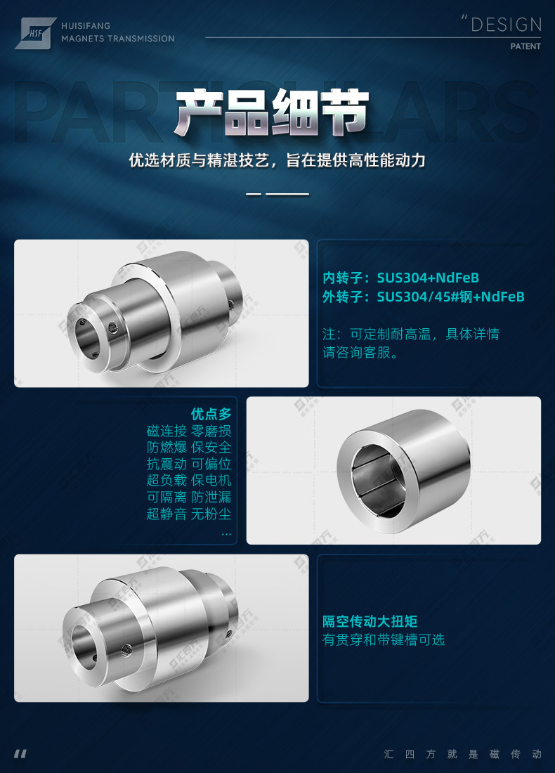 徑向磁力聯(lián)軸器(Radial Magnetic Coupling)內(nèi)轉(zhuǎn)與外轉(zhuǎn)子的中間安裝靜態(tài)法蘭隔離罩,無接觸傳動(dòng)。特別適用于中速、低速、高速輕型設(shè)備,適合正反轉(zhuǎn)傳動(dòng)。防止泄漏,避免發(fā)生安全事故,減少維護(hù)和停工更換成本。在核電、 航天航空、 生物醫(yī)療、海洋裝備、石油化工、實(shí)驗(yàn)室真空等設(shè)備都有著廣泛的應(yīng)用。